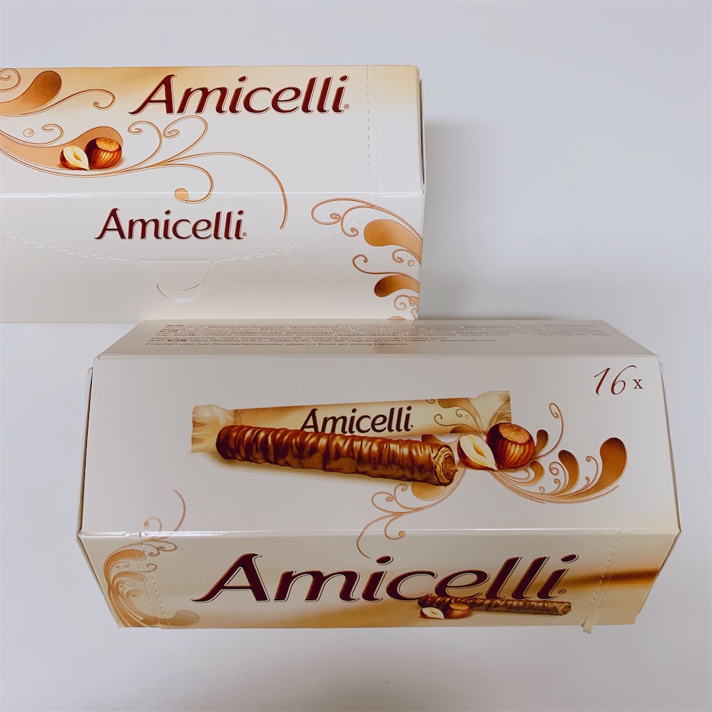 パッケージのイラストでイメージつくでしょうか?棒状の薄いクレープクッキーにヘーゼルナッツの甘いチョコが入ってて、更にクレープ生地にチョコがコーティングされているもの。